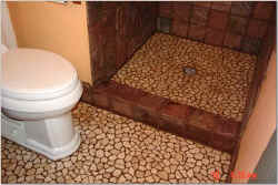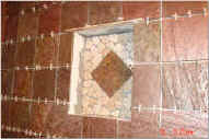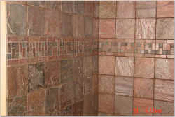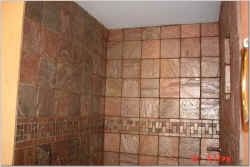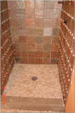 Slate Tiles were used in the shower and tumbled marble was used on the floors. All of the tile was sealed.