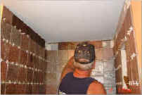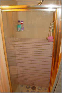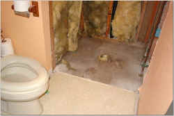 before- Shower w/door enclosure fiberglass shower after- complete tear out of old shower.