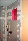 shampoo niche built into wall.